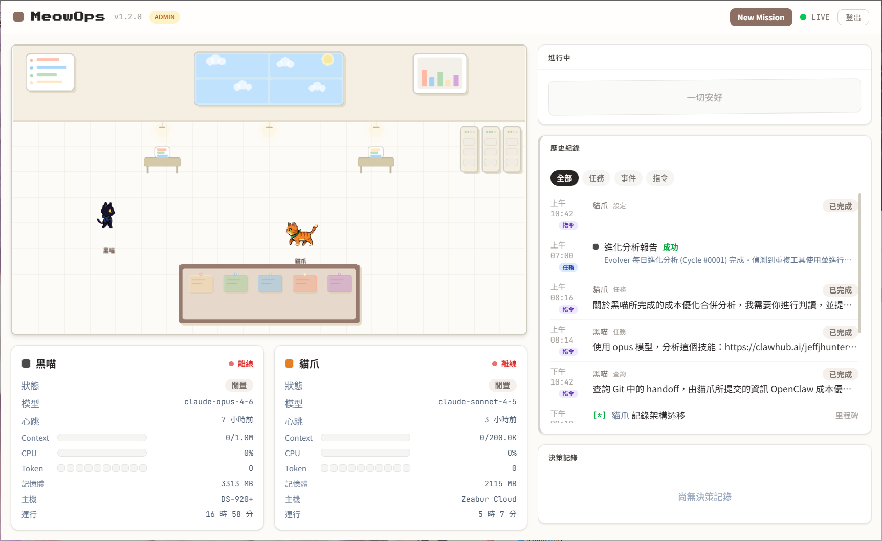- NAS 這邊新增一個 MeowClaw agent(常駐)